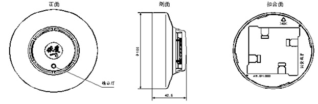探測器與底座間具有成180°的兩個(gè)安裝位置,將探測器套在底座上,順時(shí)針旋轉使底座嵌入探測器底部,稍向底座方向用力壓探測器,順時(shí)針旋轉至聽(tīng)見(jiàn)“喀噠”聲即可安裝好探測器……